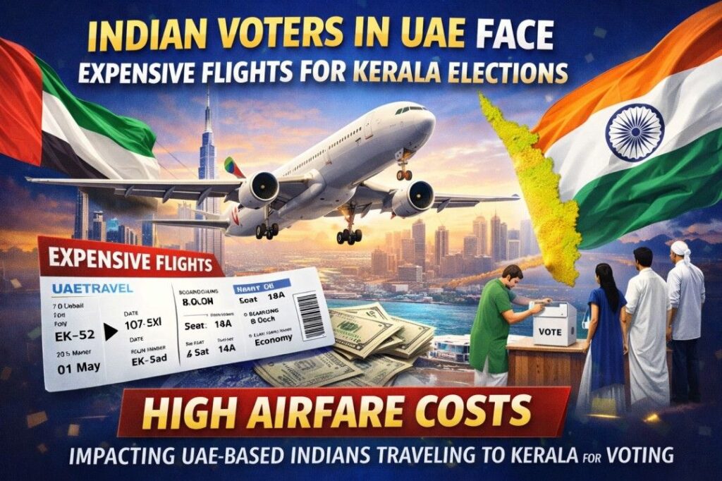 United Arab Emirates میں رہنے والے India کے شہریوں کو کیرالہ اسمبلی انتخابات میں حصہ لینے کے لیے شدید مالی دباؤ کا سامنا ہے۔ رپورٹس کے مطابق کئی افراد کو بھارت واپسی کے لیے 9,000 درہم یعنی تقریباً ₹2,30,000 تک کے فضائی کرائے ادا کرنے پڑ رہے ہیں۔